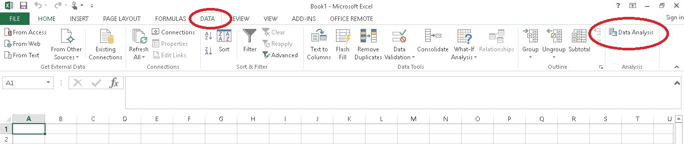 - Pilih menu “Data” kemudian “Data Analysis” seperti gambar berikut.