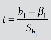 Nilai uji statistik mengikuti distribusi t dengan derajat kebebasan (degree of freedom) sama dengan ukuran sampel (n) minus k (banyaknya variabel bebas dan terikat). Nilai t statistik sama dengan slope sampel dibagi dengan slope kesalahan standar: