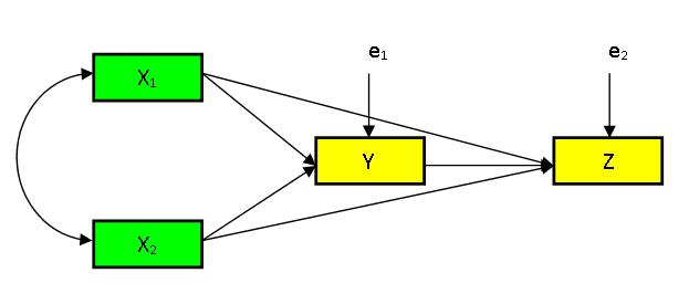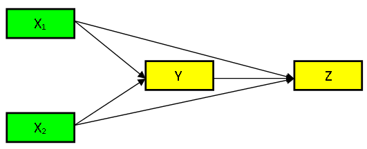 Dengan demikian analisis jalur sangat tepat digunakan bila variabel bebasnya mempengaruhi variabel tergantung tidak hanya secara langsung tetapi juga secara tidak langsung. Ilustrasi dari model ini dapat dilihat di gambar berikut.
