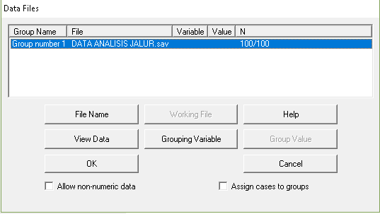 Bila Anda ragu, Anda bisa melakukan pengecekan dengan menekan tombol “View Data” maka Anda akan diarahkan ke Program statistik default untuk membuka data tadi
