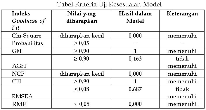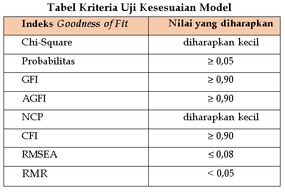 Uji kesesuaian model dilakukan dengan membandingkan kriteria kesesuaian dengan hasil perhitungan.