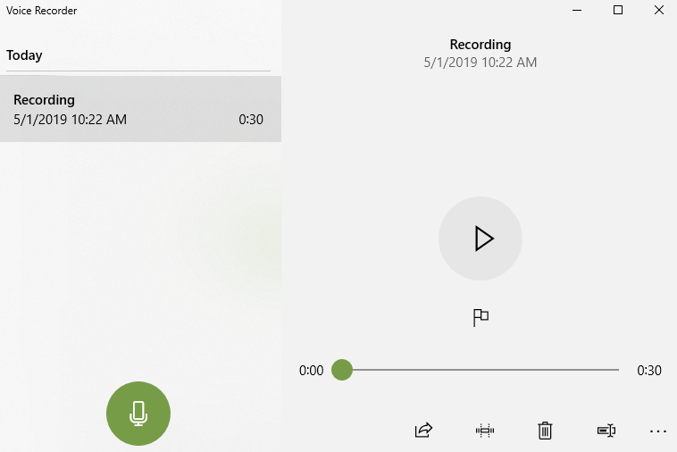 - Beralihlah lagi ke Voice Recorder untuk memulai perekaman dengan menekan tombol mikrofon atau CTRL+R di keyboard.