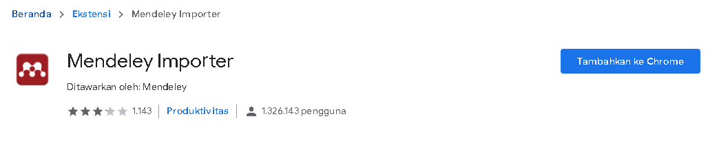 - Setelah berhasil akan muncul icon Mendeley Web Importer di sebelah kanan atas web browser Anda.