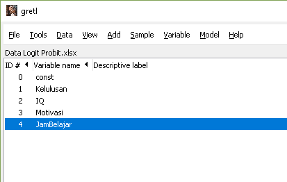 - Bila data berhasil diimpor maka akan muncul variabel yang ada di dalam file data seperti gambar berikut