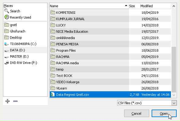 - Arahkan pada folder tempat data berada, kemudian pilih file tersebut dan akhiri dengan klik “Open”