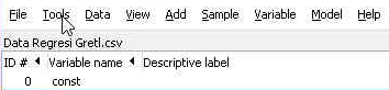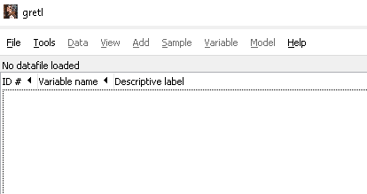 - Buka aplikasi gretl, Anda tidak perlu memasukan data apapun. Bila gretl Anda sudah terbuka, Anda bisa mengabaikan data yang sudah ada