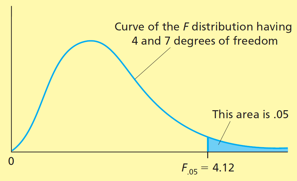 Seperti yang diilustrasikan pada Gambar, kurva distribusi F miring ke kanan. Selain itu, bentuk pasti dari kurva ini tergantung pada dua parameter yang disebut derajat kebebasan pembilang (numerator) yang dilambangkan df1 dan derajat kebebasan penyebut (denominator) yang dilambangkan df2.