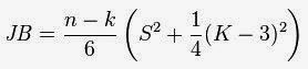 Rumus Jarque-Berra untuk data variabel berbeda dengan rumus Jarque-Berra untuk residual regeresi. Gambar 1. merupakan Rumus Jarque-Berra untuk menguji normalitas data setiap variabel yang digunakan dalam analisi regresi, sedangkan rumus pada Gambar 2. Adalah Rumus Jarque-Berra yang digunakan untuk menguji normalitas residual regresi. Rumus kedua merupakan modifikasi dari rumus asli (gambar 1).