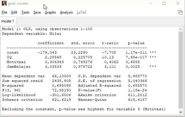 - Buka jendela output model regresi Anda