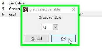 - Kali ini saya mengatur variabel IQ sebagai sumbu X, sehingga otomatis variabel usq1 sebagai sumbu Y