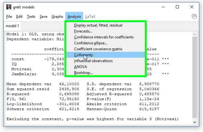 Langkah-langkah uji VIF di gretl adalah sebagai berikut: