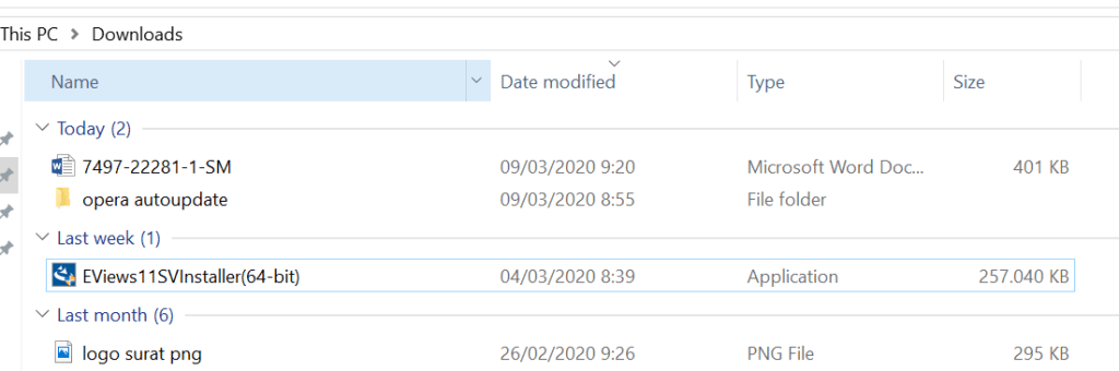 Buka file installer Eviews 11 Anda melalui File Explorer seperti gambar di bawah ini. Klik dua kali file tersebut. Bila ada kotak pertanyaan tentang verifikasi keamanan pilih saja “Yes”.