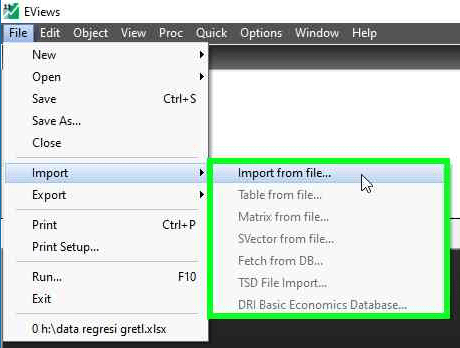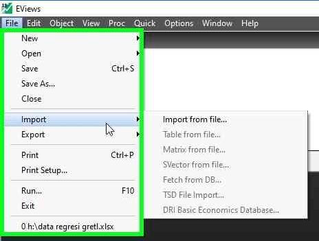 - Buka Eviews 11 Anda, stelah terbuka lanjutkan dengan menekan navigasi menu “File”