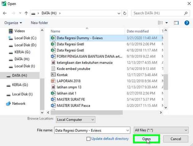 - Pilih file data yang sudah Anda simpan sebelumnya lalu klik “Open”.