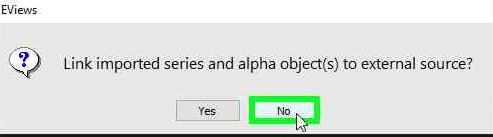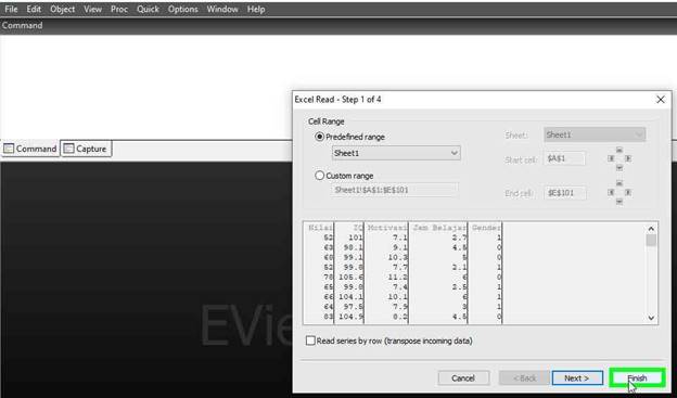 - Ikuti tahapan seperti langkah di artikel INI, lalu klik “Finish”. Bila Anda yakin bahwa pembacaan default oleh Eviews sudah benar bisa langsung klik “Finish”.