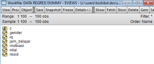 - Data ini sudah siap dipanggil di Eviews untuk analisis regresi model dummy.