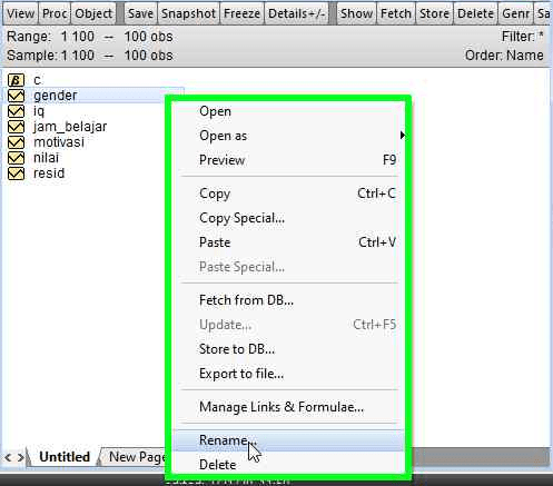- Klik kanan pada variabel “gender”.