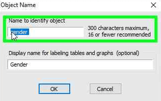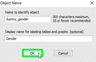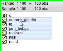 Langkah ini bersifat opsional untuk menandai bahwa variabel gender adalah variabel dummy. Luaran analisis nantinya akan lebih informatif, sehingga pembaca mudah mengetahui bahwa ada variabel dummy serta bisa membedakannya dengan variabel lain. Cara untuk menggantinya adalah sebagai berikut: