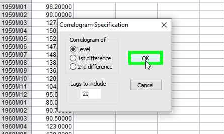 - Pilih collerogram of “Level” untuk melihat stasioneritas lalu klik “OK”