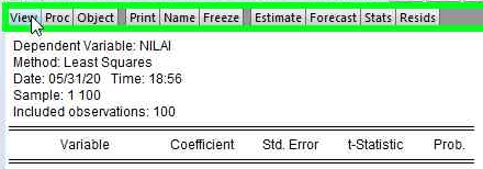 - Lanjutkan dengan memilih menu “View” di bagian kiri atas tampilan output regresi.