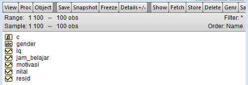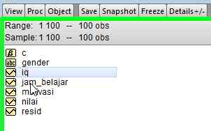 - Buka Data Variabel di Eviews Anda, lalu pilih tampilan utama seperti gambar berikut ini