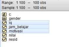 - Klik pada variabel pertama (IQ) tekan “CTRL” atau “Shift” di keyboard dan jangan lepaskan sampai Anda melakukan klik semua variabel bebas yang akan dilihat tingkat korelasinya.