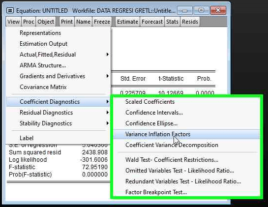 Langkah-langkah uji VIF di Eviews adalah sebagai berikut: