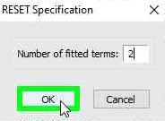- Anda kemudian akan diarahkan pada dialog RESET Specification. Silakan pilih berapa term fit yang akan digunakan. Pada contoh ini saya memilih dua term saja. Jangan lupa untuk klik “OK” untuk memulai tes.