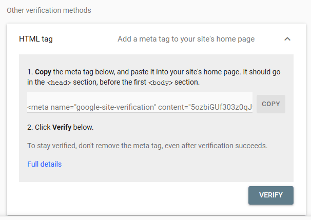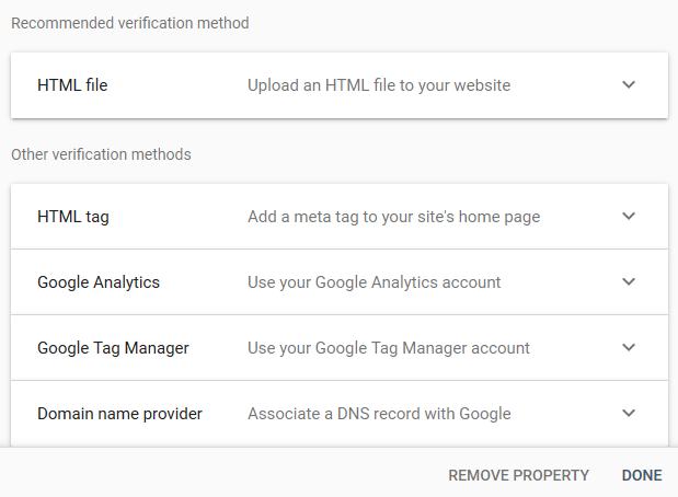 - Ada beberapa pilihan metode verifikasi kepemilikan laman website.