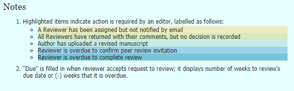 - Editor bisa melihat daftar kemajuan naskah artikel yang sedang berada dalam proses review. Judul naskah artikel dengan background yang berwarna biru muda menandakan penulis sudah mengunggah hasil reviewnya, namun editor belum memberi tanggapan.