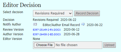 - Editor bisa melakukan penelusuran apakah revisi sudah sesuai dengan harapan atau perlu untuk melakukan konfirmasi dengan reviewer melalui round selanjutnya.