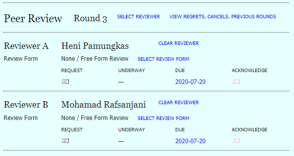 - Dengan demikian proses review akan berlanjut ke round berikutnya. Dalam contoh ini berlanjut ke round 3. Dengan demikian editor harus melakukan permintaan kesediaan para reviewer untuk mereview hasil revisi penulis. Proses permintaan kesediaan ini hampir sama dengan di Round 1.