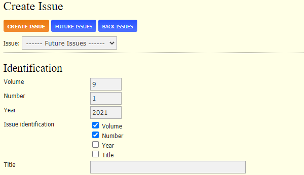 - Masukkan volume, nomor, dan tahun isu yang akan dibuat. Kalau perlu bisa ditambahkan judul isu.