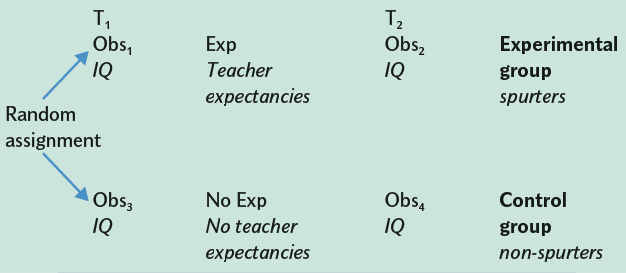 Selain itu, ada karakteristik siswa lain yang dimasukkan secara acak dalam kedua kelompok tersebut. Misalnya gaya belajar atau status sosial ekonomi orang tua. Siswa dengan berbagai gaya belajar atau berasal dari latar belakang sosial ekonomi yang berbeda dimasukkan secara acak ke dalam dua kelompok tersebut, baik kelompok eksperimen maupun kelompok kontrol. Dengan melakukan prosedur ini maka para peneliti dapat merasa yakin bahwa satu-satunya perbedaan antara kedua kelompok adalah penggunaan media pembelajaran interaktif daripada yang lain. Kita akan yakin jika hasil analisis mendapatkan perbedaan kinerja antara kedua kelompok, itu karena manipulasi eksperimental saja. Untuk menangkap esensi dari desain ini, kita akan menggunakan notasi sederhana berikut: