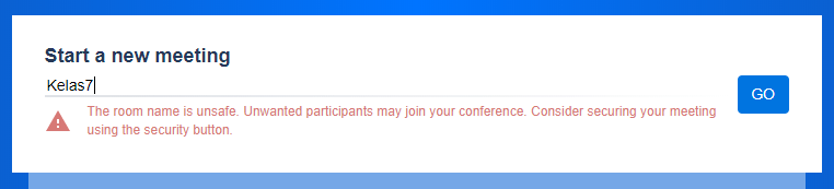 - Buat nama room yang unik dan mencerminkan nama kelas yang kita ampu. Jangan menggunakan nama umum karena berpotensi adanya partisipan yang tidak kita inginkan masuk ke ruang virtual kita.