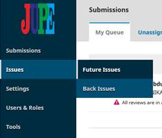 - Login sebagai editor, arahkan pointer ke bagiam “Issues” lalu pilih “Future Issues”.