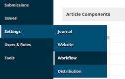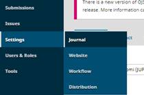 - Setelah masuk di dashboard journal manager maka arahkan mouse ke “Settings” kemudian pilih “Workflow”.