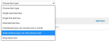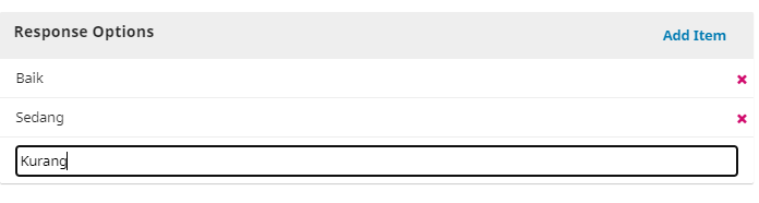 - Silakan tambahkan item respons dengan cara klik “Add Item” seperti gambar di bawah ini.