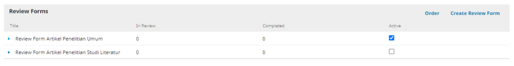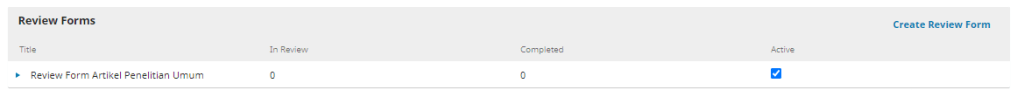 - Bila sudah selesai silakan aktifkan review form ini dengan mencentangnya di bagian “Active”.