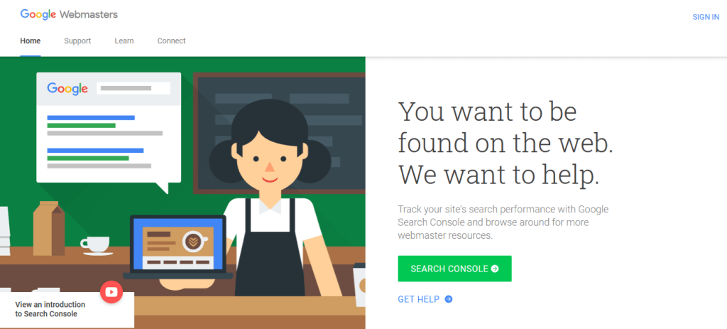 - Kali pertama yang harus kita lakukan adalah mengunjungi laman https://www.google.com/webmasters/, setelah itu masuklah menggunakan email jurnal atau email kita dengan klik “SIGN IN”.