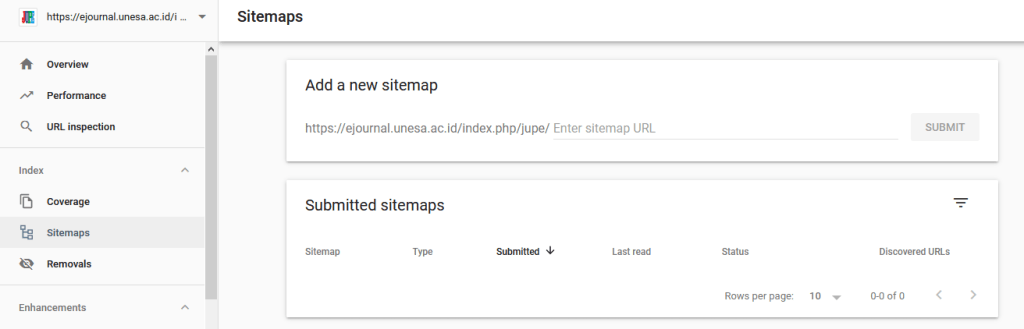 Untuk mempermudah mesin pencari mengidentifikasi dan membaca metadata isi laman jurnal kita, maka kita perlu memberitahu mesin robot Google tentang struktur konten laman jurnal kita. Jadi, kita perlu “memberi umpan” robot ini melalui sitemap laman OJS kita. Langkah-langkahnya adalah sebagai berikut: