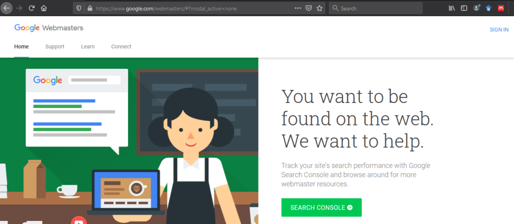 - Silakan masuk ke laman Google Webmaster di laman https://www.google.com/webmasters/ lalu klik “SIGN IN”.