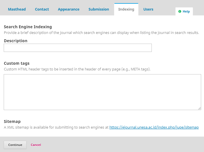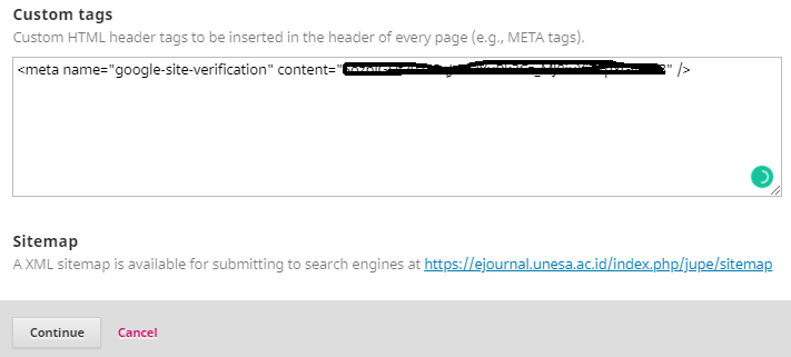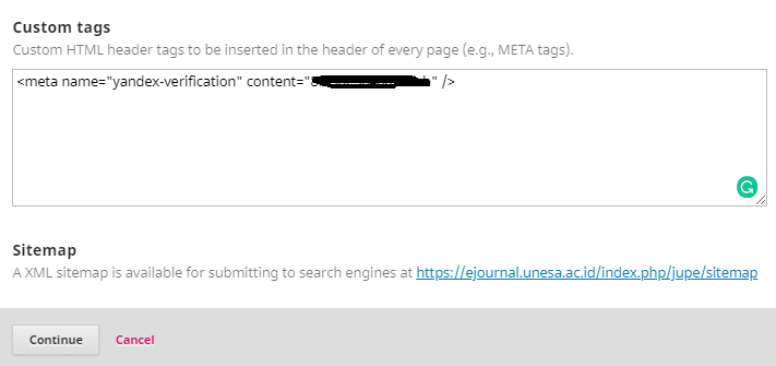 Memasukkan meta tag di laman OJS 3