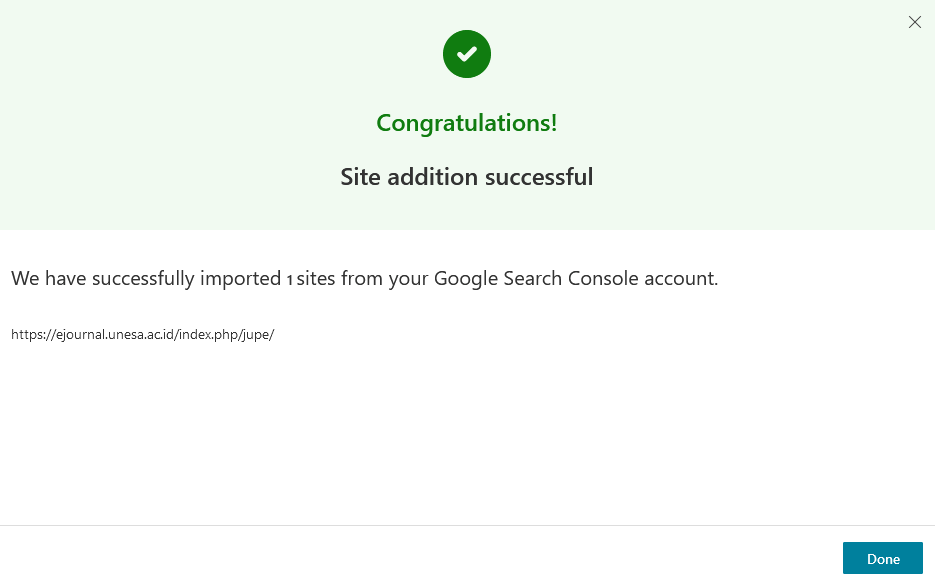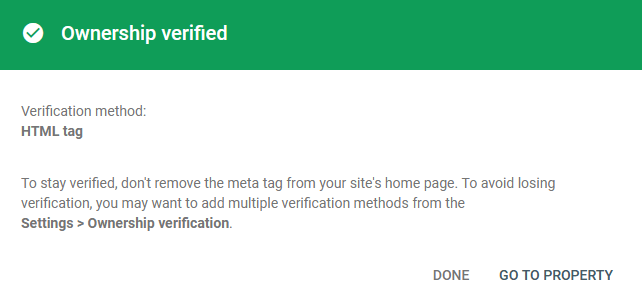 - Selesai, sampai di sini Anda telah berhasil membuat property Google Webmaster.