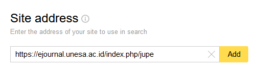 - Masukkan URL home jurnal Anda di kotak yang telah disediakan, lalu klik “Add” sperti gambar berikut ini.