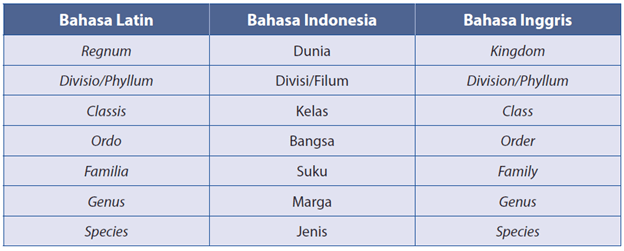 Urutan tersebut didasarkan atas persamaan ciri yang paling umum, kemudian makin ke bawah persamaan ciri semakin khusus dan perbedaan ciri semakin sedikit.