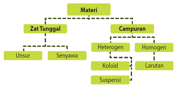 Semua benda yang ada di bumi kita tersusun dari materi. Ilmuwan menggolongkan materi berdasarkan komposisi dan sifatnya. Berdasarkan komposisinya, materi yang ada di alam dapat diklasifikasi menjadi zat tunggal dan campuran.