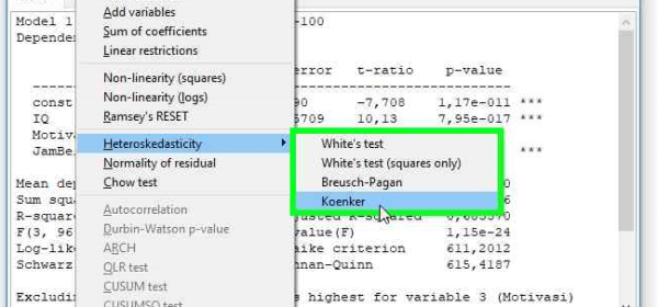 Pengujian adanya gejala heteroskedastisitas pada residual model regresi dapat dilakukan dengan berbagai tes. Salah satu pelopor uji residual ini adalah uji Breusch-Pagan, yang melakukan regresi